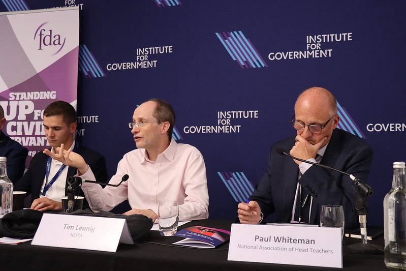 Penman was speaking at the FDA and IfG’s joint fringe event at Labour Party Conference in Liverpool on 30 September. The event was called ‘Should public sector pay and pensions be reformed?’, where Penman was a panellist alongside IfG Chief Economist Dr Gemma Tetlow, Chief Economist at Nesta and former senior civil servant Tim Leunig, and General Secretary of the National Association of Head Teachers Paul Whiteman. Questions posed to the panel focused on hypothetical reforms to the distribution between someone’s pension and their salary as part of their overall benefits package.